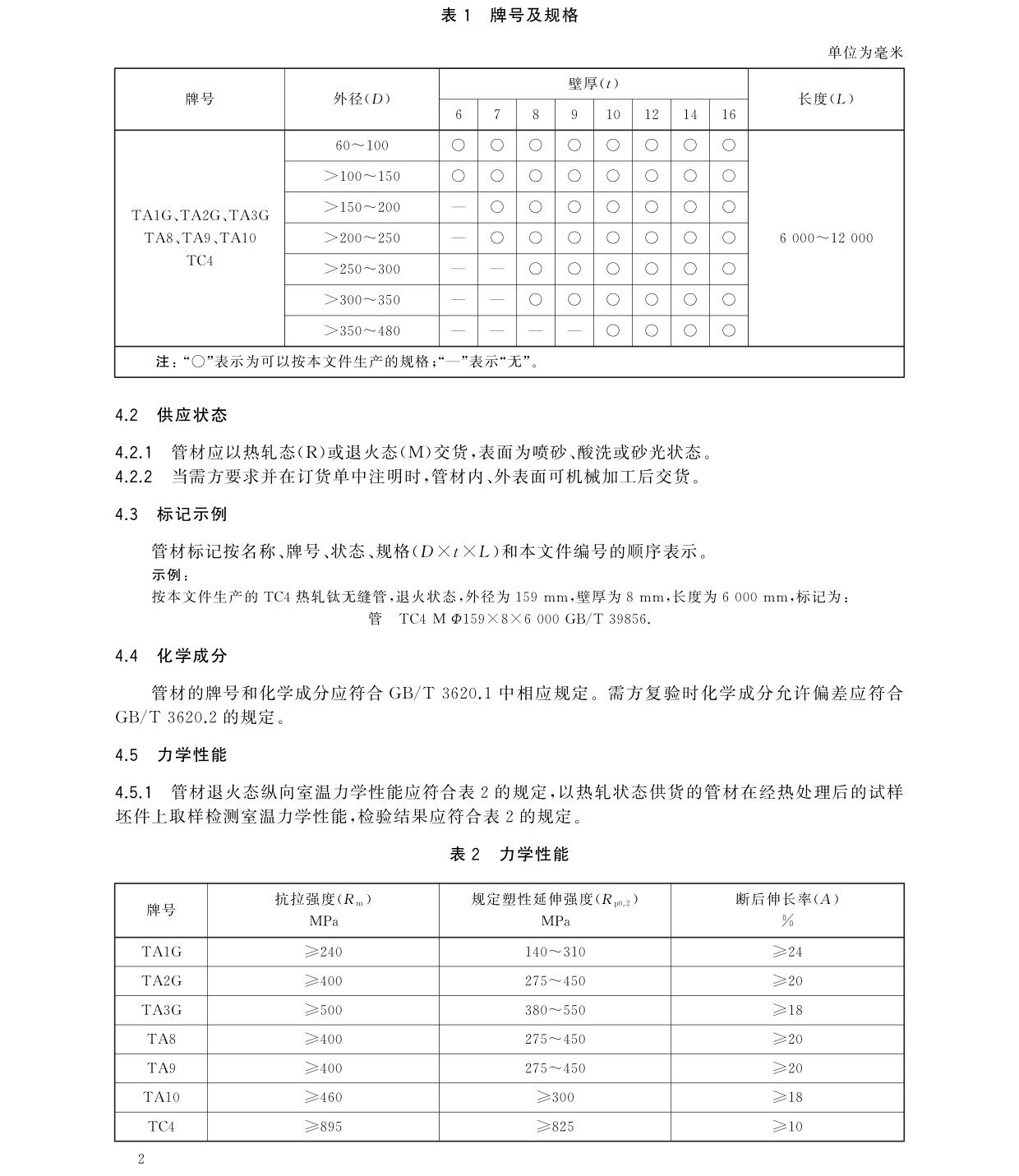 工業用熱軋鈦合金管無縫管國家標準GB/T 39856-2021